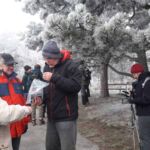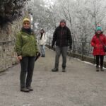 Nach anfänglichem leichten Frieren waren wir durch die zum Teil herausfordernde Strecke aufgewärmt. Schneewandern inmitten von dick mit Raureif geschmückten Bäumen und Sträuchern ließ die gute Laune im Nu steigen. Bei aller Begeisterung vergaß die 15-köpfige Wandergruppe nicht den Wanderpass mit dem 1. Etappen-Stempel zu versehen, schließlich haben wir noch einige Etappen vor uns! Mit dem Autobus und der Straßenbahn ging es nach Neuwaldegg und heimwärts.